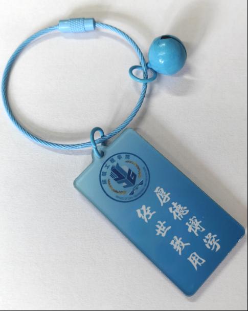 的代表颜色相得益彰,设计巧妙,寓意深远。钥匙扣上的矩形亚克力吊牌正面镌刻着校徽与校训“精工博学,厚德敏行”,反面则印有院徽与院训“厚德博学,经世致用”,既展现了学院的文化底蕴,又寄托了对新生们的殷切期望。这份独特的入学礼物,不仅是一份纪念,更是一份激励,鼓励建工学子们在未来的学习生活中,不断开阔眼界,勇于创新,追求卓越。