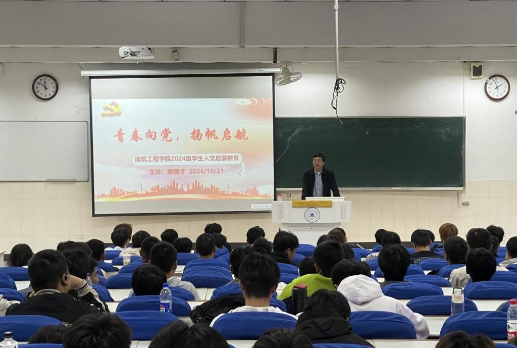 于10月21日在秀山校区阶教102组织开展2024级新生入党启蒙教育。本次会议特邀安工大关工委报告团成员黄国才教授主讲,新生辅导员刘天泉和2024级本科新生参会。