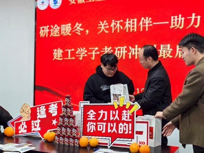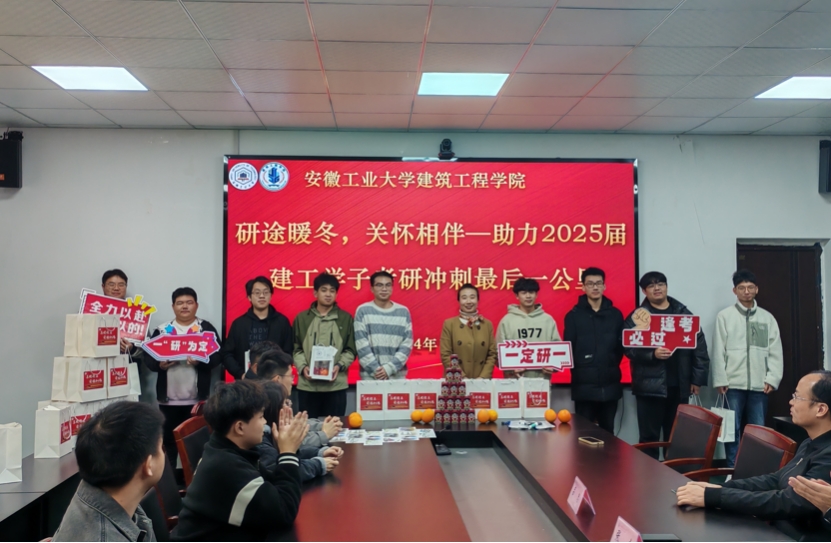 于建工楼开展“研途暖冬,关怀相伴”2025届考研学子助力活动。学院党委书记张虎,党委副书记、副院长王颖之,副院长吕忠,毕业班辅导员和全体考研学生参加活动。