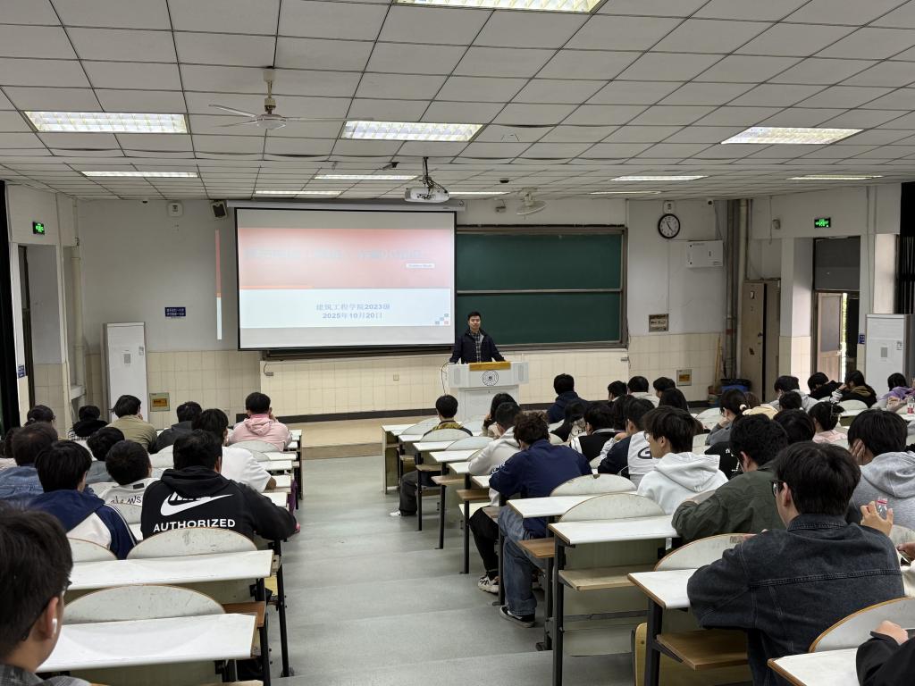 2023级在阶教105召开防范电信网络诈骗主题教育年级会。会议由2023级辅导员张腾飞主持,2023级学生参加。