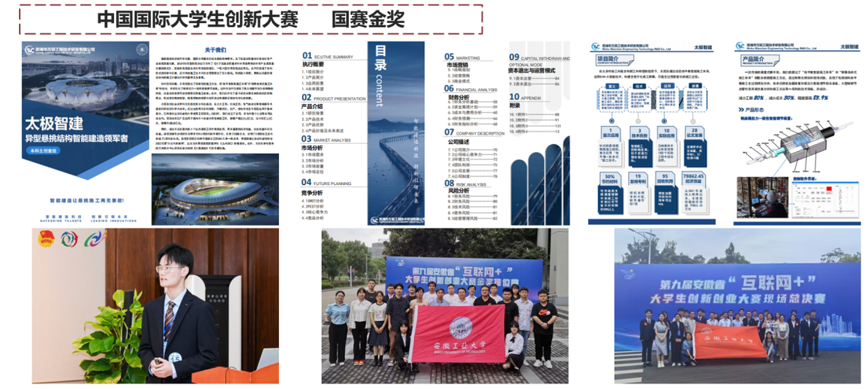 他积极参加学科竞赛,本科期间获得了“中国国际大学生创新大赛”全国金奖(创造我校建校以来在该赛事的最好成绩)、“第十五届全国大学生结构设计竞赛”全国三等奖、 “第十届全国大学生制药工程设计竞赛”全国三等奖、“第五届全国机器人专利创新创业大赛”全国三等奖、“第九届安徽省互联网+大赛”安徽省金奖”、“第五届安徽省结构设计竞赛”安徽省一等奖、“第六届安徽省大学生先进成图技术与产品信息建模创新大赛”安徽省三等奖、“第七届安徽省大学生先进成图技术与产品信息建模创新大赛”安徽省三等奖、第十一届华东区大学生CAD应用技能竞赛 华东区三等奖的优异成绩。