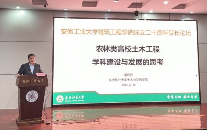 陕西省杰青、陕西省青年科技新星、东北林业大学土木与交通学院院长谢启芳教授作了题为《农林类高校土木工程学科建设与发展的思考》的报告,报告以东北林业大学土木工程学科为例,简要介绍农林类高校土木工程学科的历史、现状和不足,提出学科建设与发展的思路。