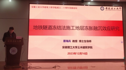 安徽省高校学科(学科)拔尖人才、安徽省高校优秀青年人才、安徽理工大学土木建筑学院副院长蔡海兵教授作了题为《地铁隧道冻结法施工地层冻胀融沉效应研究》的报告,介绍了地铁隧道冻结法施工中地层冻胀融沉现象对工程周围环境的不利影响,考虑冻土的正交各向异性变形特征,提出地层冻胀融沉数值模拟方法,结合室内试验、原材料模型试验、离心模型试验等方法,对广州、上海、合肥等城市地铁隧道冻结法施工期地层冻胀融沉效应进行了研究。