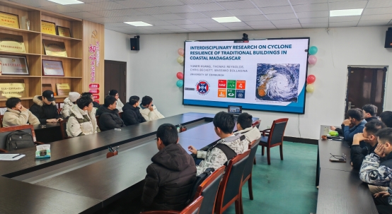 师生作题为“Interdisciplinary Research on Cyclone Resilience of Traditional Buildings in Coastal Madagascar(马达加斯加沿海传统建筑的飓风韧性的多学科研究)”的线上学术报告。部分专业教师、学生代表参加了报告会。报告会由土木工程系教工党支部书记王士龙主持。