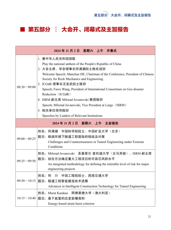 报告简介:2024年是全面贯彻落实党的二十大精神的关键之年,是实现“十四五”规划目标的攻坚之年,为加强我国岩石力学与工程领域的学术交流,促进国内国际岩石力学与工程领域科技创新,本次学术年会面向国家战略需求,以“重大工程与风险防控”为主题,以服务好广大岩石力学与工程科技工作者,特别是在校学生和青年会员为宗旨,不断探索创新,设立“主会场+中心会场+卫星会场”三级会场。在成都设置主会场,面向世界科技最前沿;在全国各地设置中心会场,面向各地区国家重大工程建设;在各高等院校设置卫星会场,落实学会党委“为学生服务,为未来服务,为历史负责”的工作部署,助力国内外岩石力学与岩土工程的高水平学术交流和产业发展。