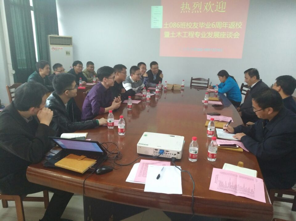 座谈会上,赵龙致辞,深情表达了与校友们重聚的喜悦之情;钱付平介绍了学院的发展历史、师资力量、学科建设等基本情况,特别是近年来土木工程专业建设状况;陈德鹏回顾了与校友的授课历程,并介绍了教学特色、专业评估(认证)和就业形势;黄伟教授通过与校友们亲切的交流,对大家取得的成绩给予了极大肯定。会上校友们回顾当年的大学生活,及讲述毕业后的个人发展历程,对老师孜孜不倦的教诲表达感激之情,同时对学校和学院的巨大发展变化感慨万千,纷纷表达了对学院取得可喜成绩感到骄傲和自豪,并表示一定会尽可能地支持学院建设,为学院长足发展贡献校友力量,提出了专业发展的建议,并对“人文建工”的学院建设理念深表赞同,完成了毕业要求达成度评价问卷调查。